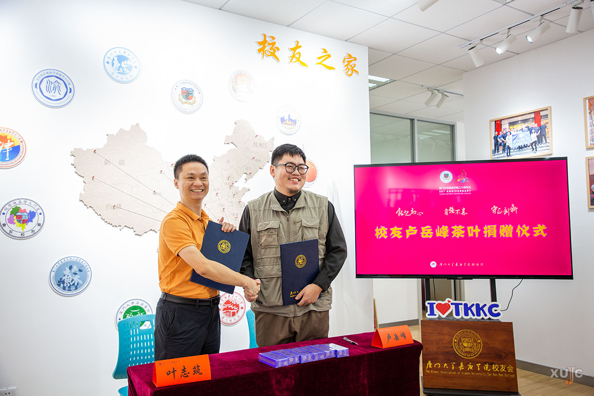 2023年10月,我校喜迎建校20周年,设计与创意学院2020届校友、蟠龙涧岩茶品牌总监卢岳峰(外号:二狗)专门设计“嘉庚二十周年校庆品鉴茶”,并献礼茶叶两万袋,与师长、回校校友们分享。
