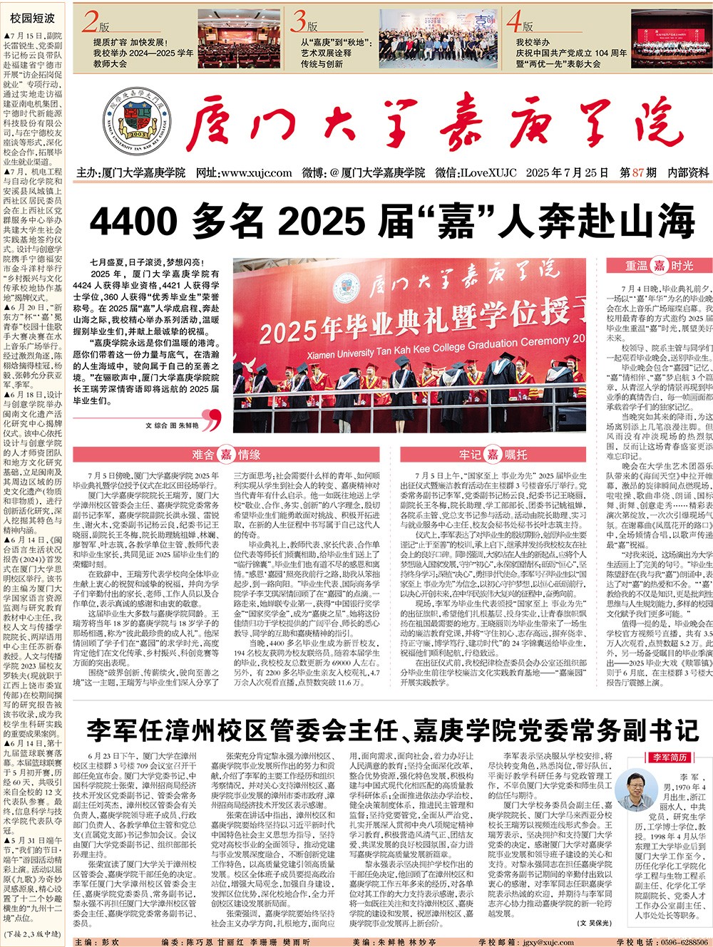 李军任漳州校区管委会主任、嘉庚学院党委常务副书记