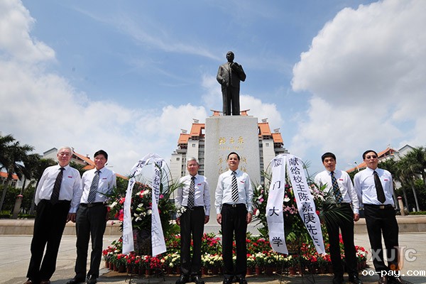 全体师生首先向陈嘉庚先生铜像深深三鞠躬,随后,邱伟杰、张必华代表厦门大学,王瑞芳、戴一峰代表嘉庚学院向陈嘉庚先生铜像敬献花篮。