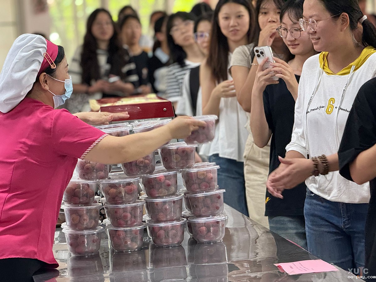 6月24日中午,南、中、北区食堂及教工餐厅飘起了荔枝香,我校又向师生免费发放800多盒(共计700多斤)荔枝。