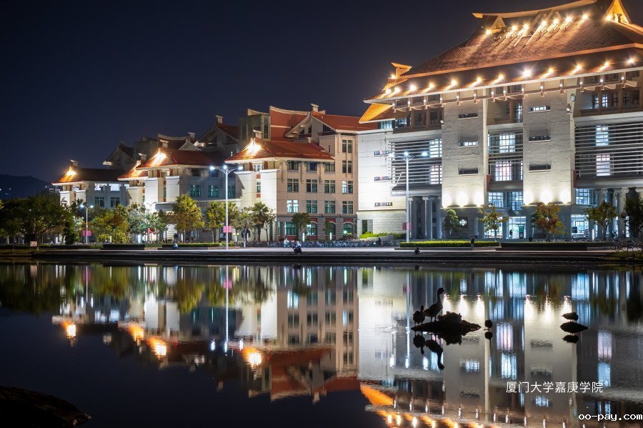 静谧的栖霞湖里有一群精灵,仿佛也因梦幻的主楼亮灯而驻足