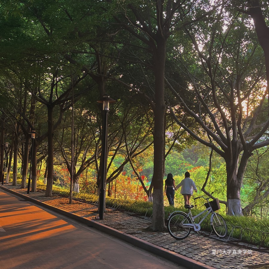 从树枝缝隙间落下,落在地上,只见那葱葱大树下的影,少女的头上顶着一片光,骑着单车去她的远方。