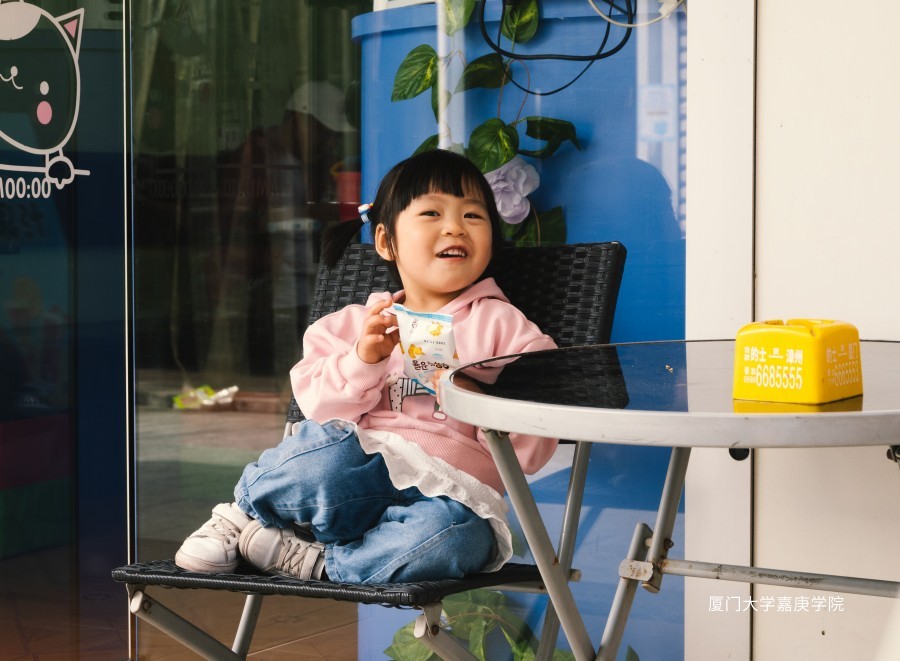 小女孩咿呀咿呀地说:“又看到你们啦!嘉庚的姐姐”