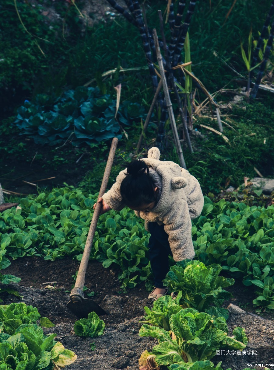 在老家乡村,偶然看到一个小女孩在用锄头帮奶奶锄着地,这在现今是很难看到的一副景象。