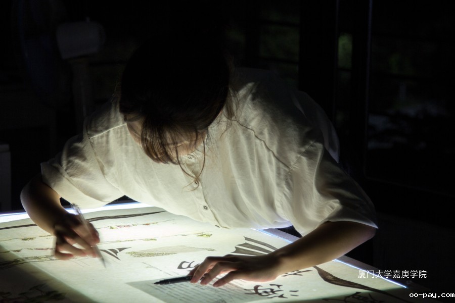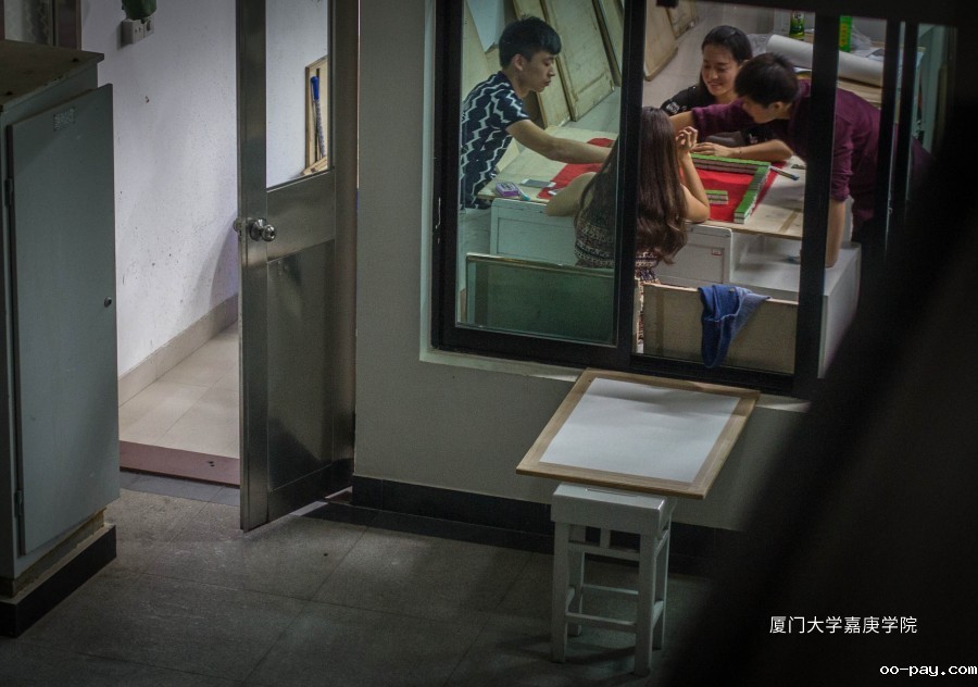 某个周六晚上,五楼的一间教室里,一位同学正默默地赶着图。