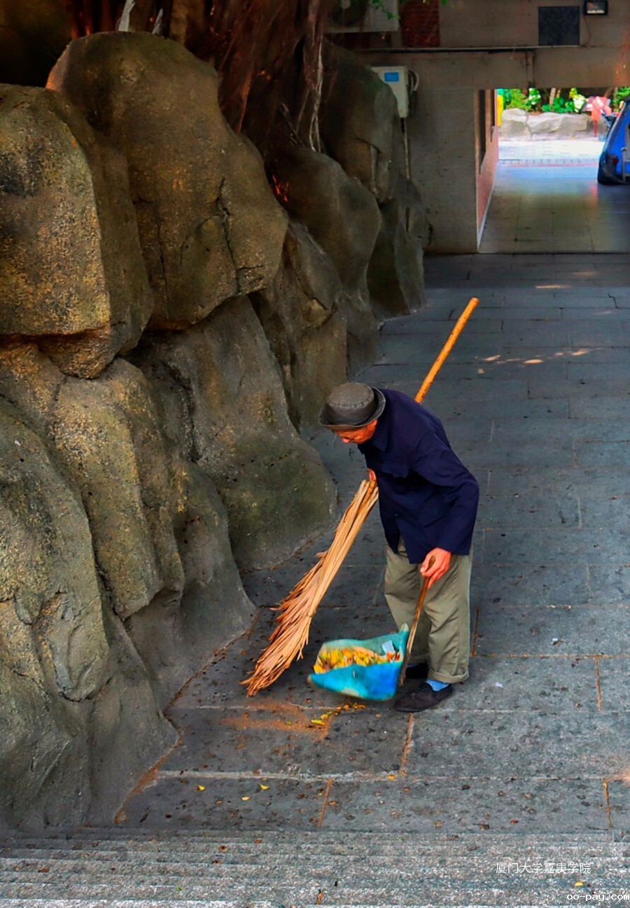 周末游公园,正好看到了一位伯伯正在清扫地上的树叶,便立马记录下这瞬间