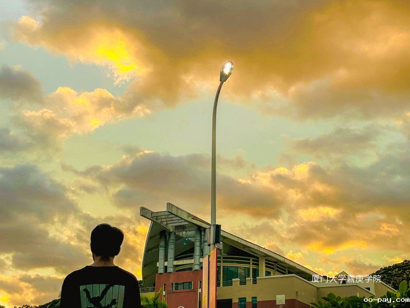 黄昏来临,南强广场上,少年正在看向建筑思考