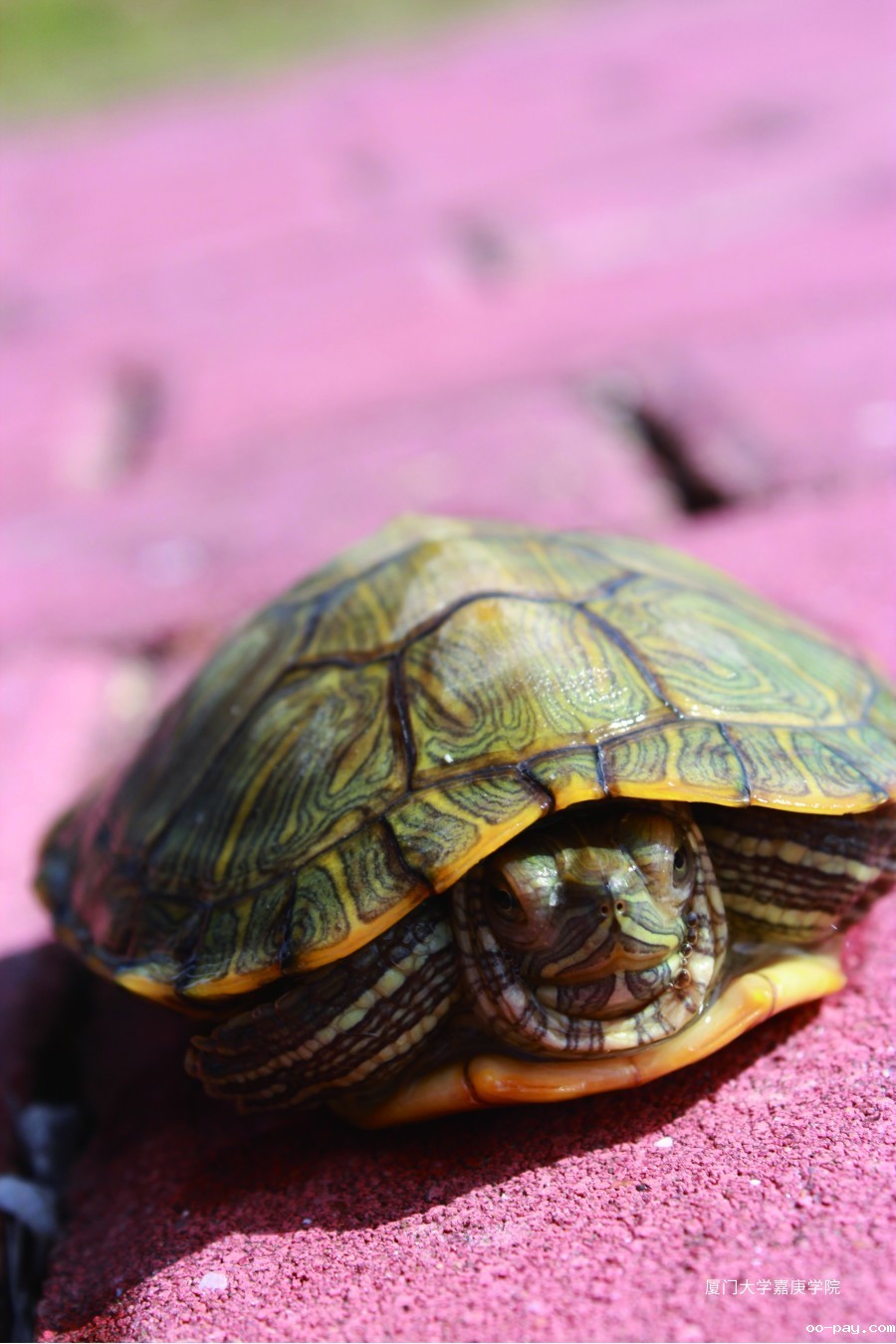 在栖霞凌波畔,一只小乌龟在石间,缩着头沐浴久违的阳光,懒洋洋的充满睡意。