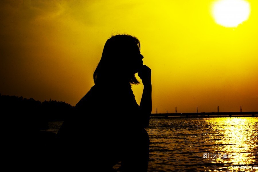 一抹夕阳下,一位少女在一捧湖泊旁看着远处的高架桥思索着什么…