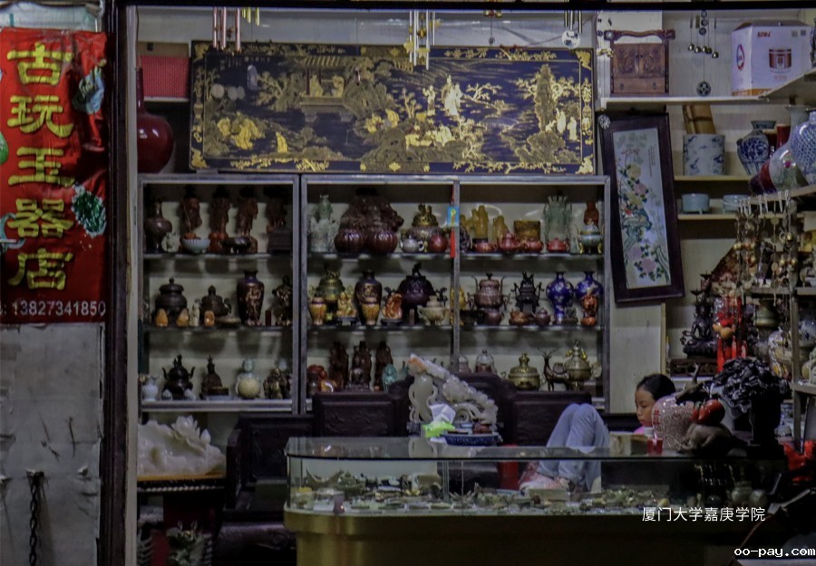 古城中的古玩玉器店,小女孩悠然自得地坐在古玩店里和华贵的氛围相得益彰