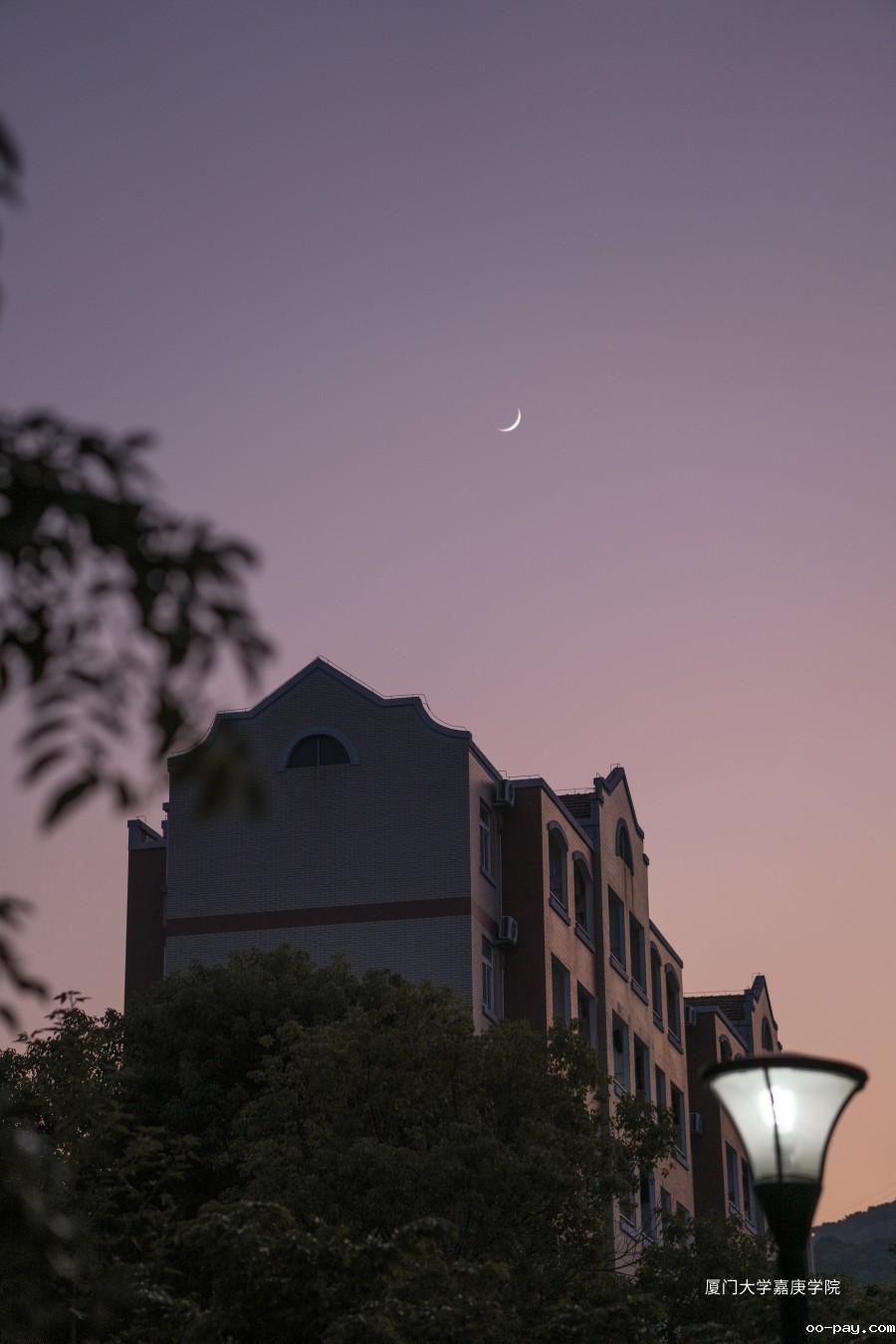 摄于10月1日,70大庆晚。淡紫色的晚霞照耀在嘉庚宿舍,一轮新月在夜色中若隐若现,充满诗意。