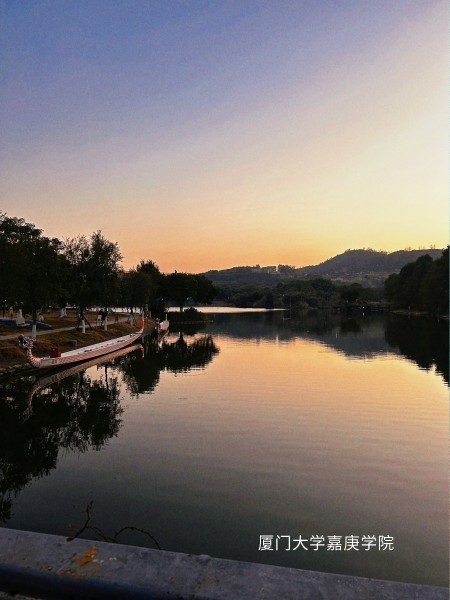 黄昏湖畔龙舟静,山峦映天嘉园情。