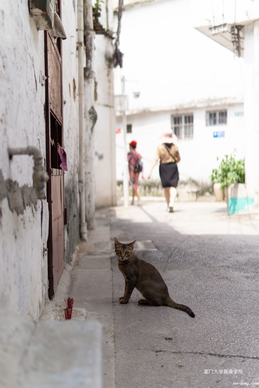 匆匆离开的游人,静候门外的猫。