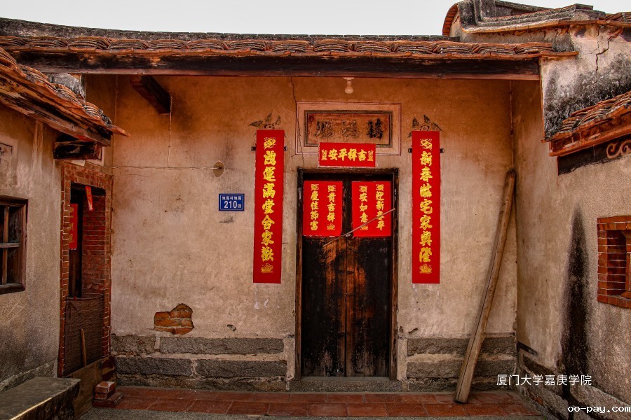 埭美古村的建筑主体呈现硬山式燕尾脊建筑风格,独特的门边对联是埭美古村老建筑的特色。