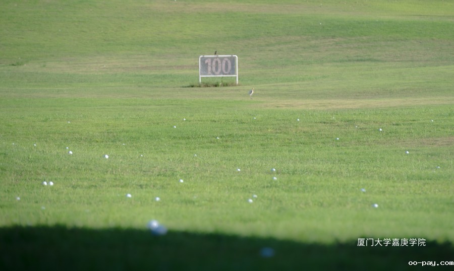 绿色草地上,散落的白色高尔夫球如繁星般与远处的白鹭相呼应。高尔夫场并没有成为人类的专属,是人与自然和谐共处的最好体现。