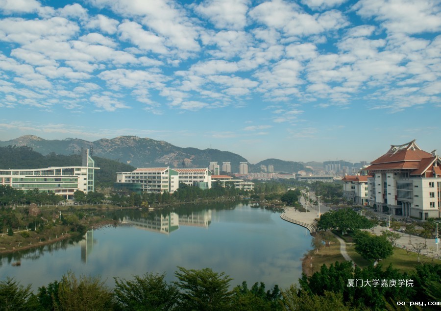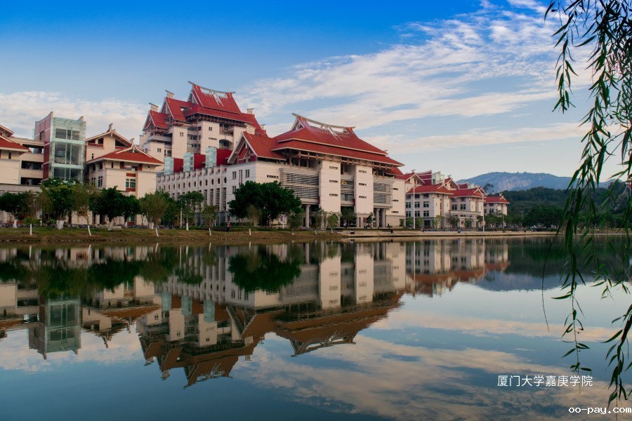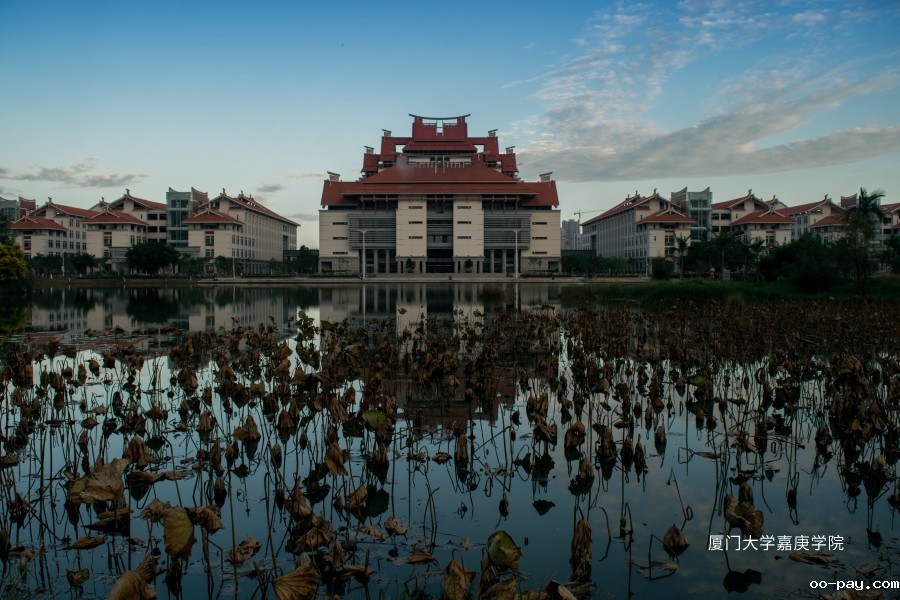 当太阳落山,留下一丝光线,“嘉庚”的轮廓在蓝色天上烙下一天的印记。