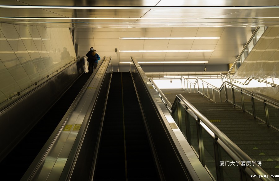 空无一人的电梯上不同往日。