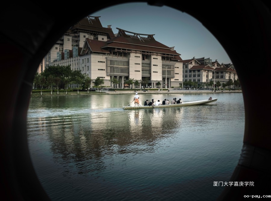 初夏之际,龙舟队在学校湖边上日常训练,利用救生圈形成框架构图,把龙舟队和嘉庚主楼群框在一起,好像一幅画一样,寓意通往成功的明天,向往美好的未来。