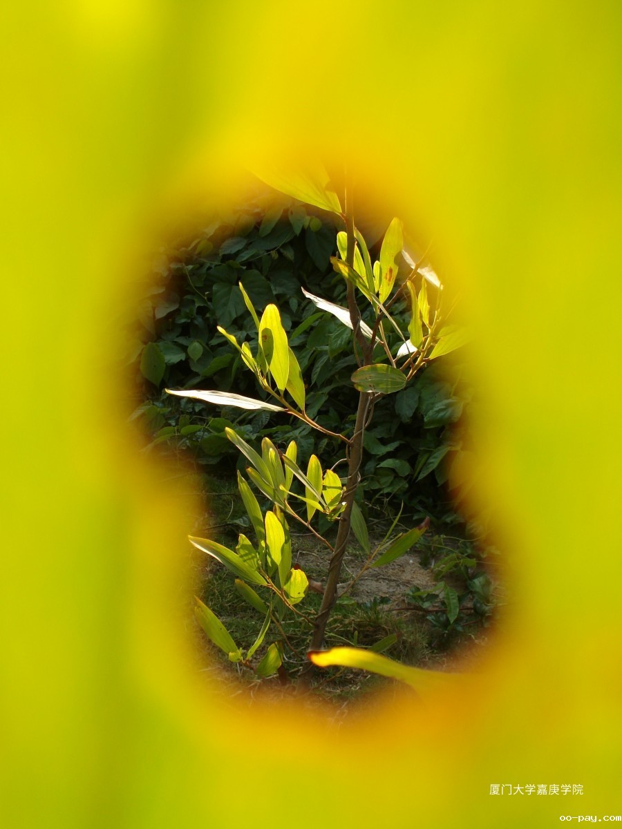 偶尔被啃噬掉的叶洞就像人生遇到的挫折,透过它我们依然能够看见未来的希望。