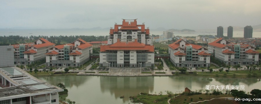 太阳刚刚升起,海天一线间的云雾托着我们年轻的嘉庚学院茁壮成长。