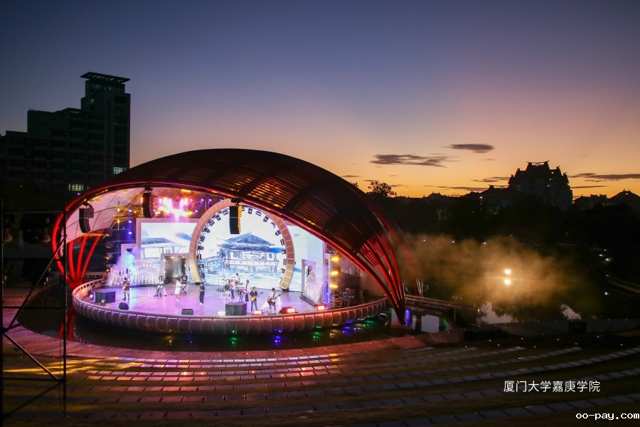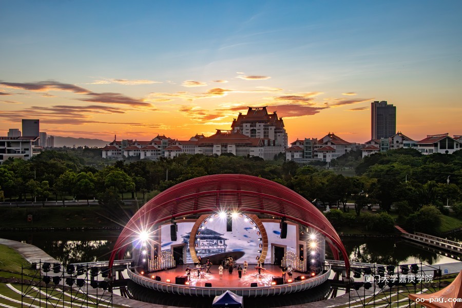摄于2024年7月3日,毕业晚会通宵彩排的小巨蛋。伴随着舞台上《反方向的钟》音乐响起,太阳照常从东方的海面升起。