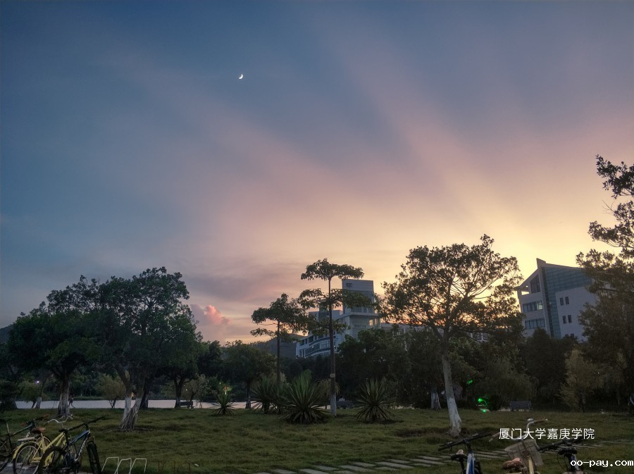 将要落下的太阳对这个今天的告别,与升起的皎月交织的光,这是这一刻的嘉庚,天空是日与夜厮杀的战场