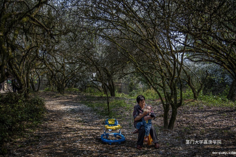 南靖葛竹生长着一片枳实花。枳实花下,一个小朋友在长辈的喂养下生长。