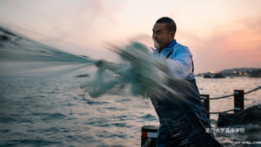 大男举网锦鳞红