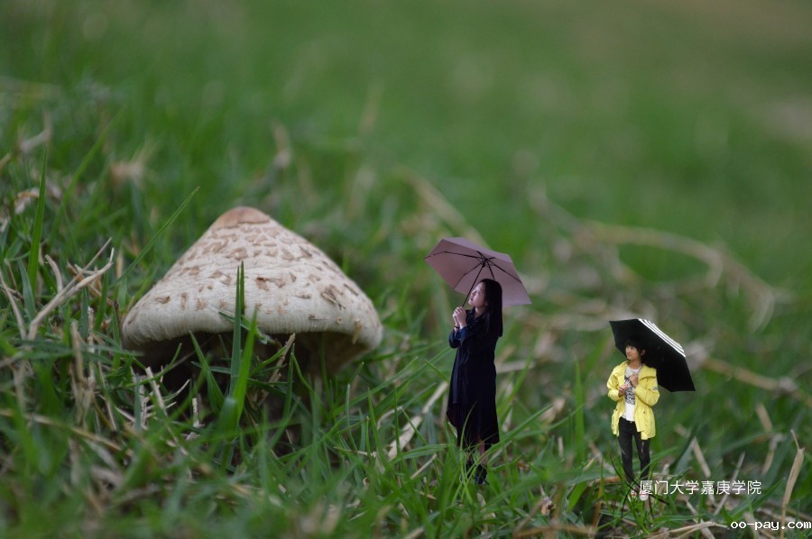 雨下,蘑菇有自己的帽子,我们也有伞遮挡雨点。小蘑菇,我悄悄告诉你,不用怕被妈妈知道,雨天的嘉也很美哟~