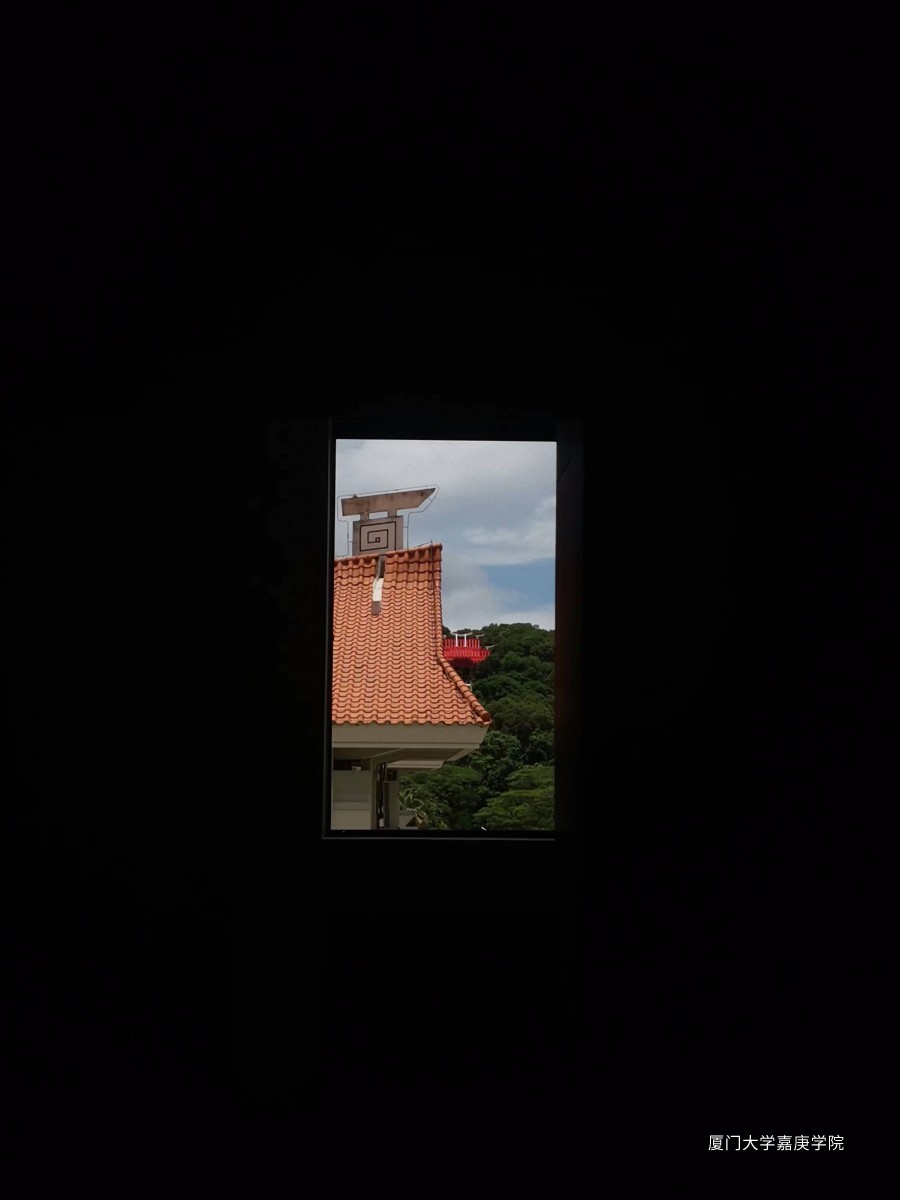 我在图书馆无意看到,尝试一下拉低曝光,让一个固定不变的画面格局,犹如一幅画,出现在我的面前。大小对比,明暗对比,色彩强烈对比。嘉园的美总是一瞬,一秒一个偶然。