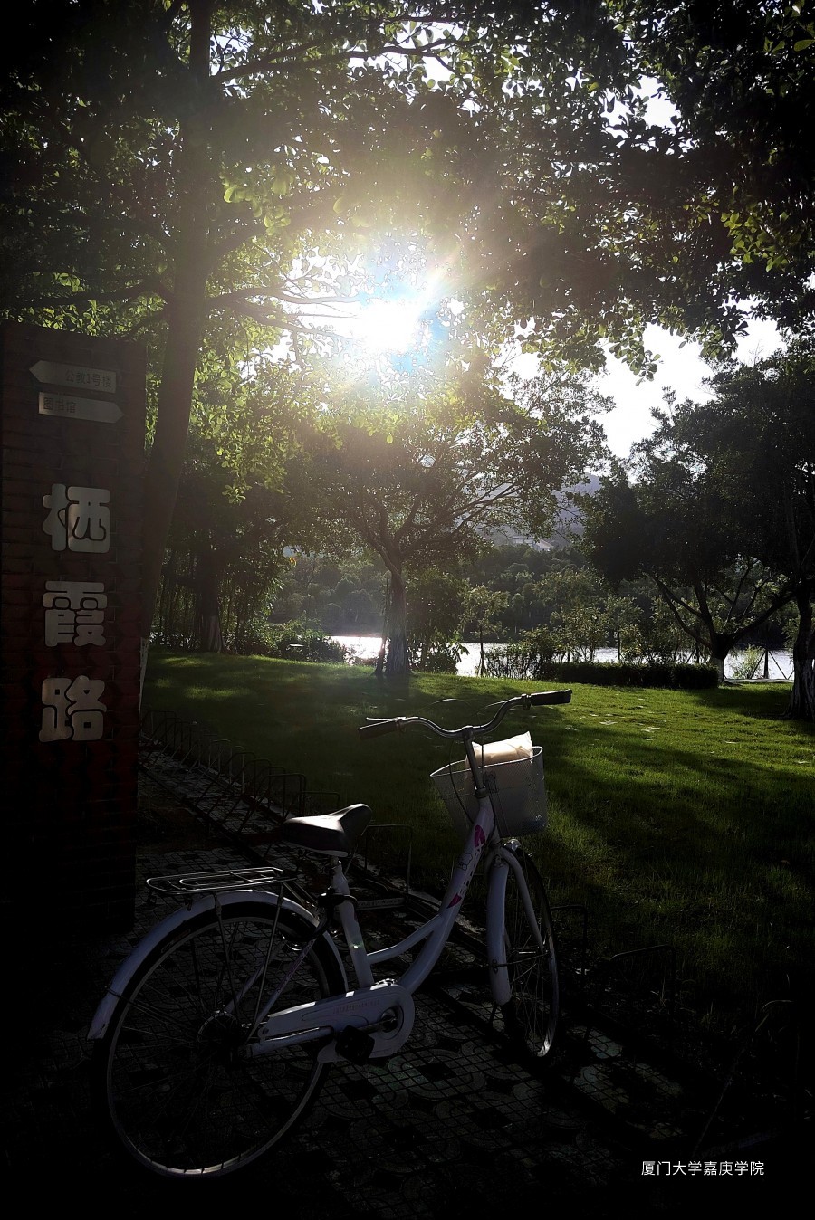 上早课的同学把自行车架清空,小小的人将目光迎着朝阳抬起