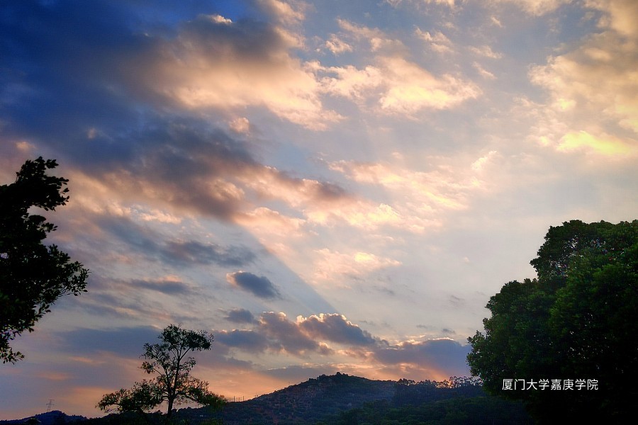 公一旁的栖霞路上,阳光栖霞,激起层层金鳞;