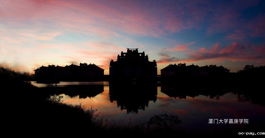 朝霞下的主楼群全景。