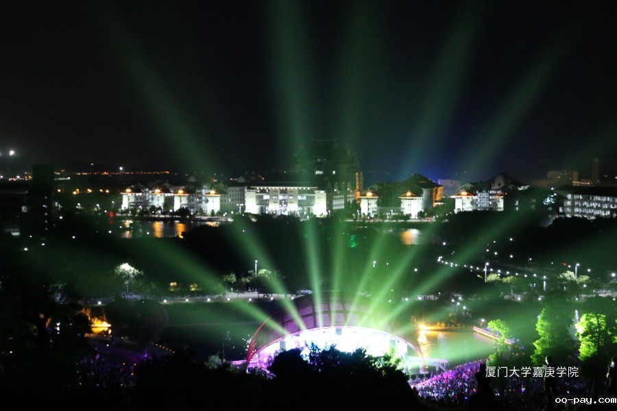 夜幕笼罩,小巨蛋在嘉庚群楼的映衬下更显活力四射,青春在这里起舞!