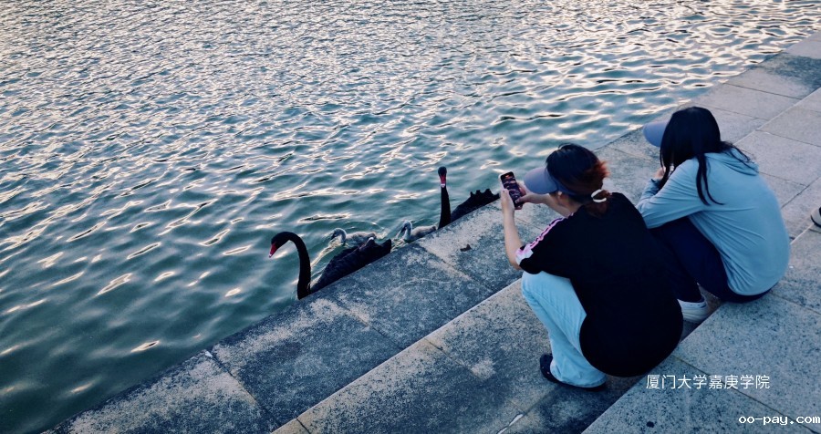 炎炎夏日,鹅爸鹅妈带着孩子们与同学们亲密互动,校园生态环境可见一斑。