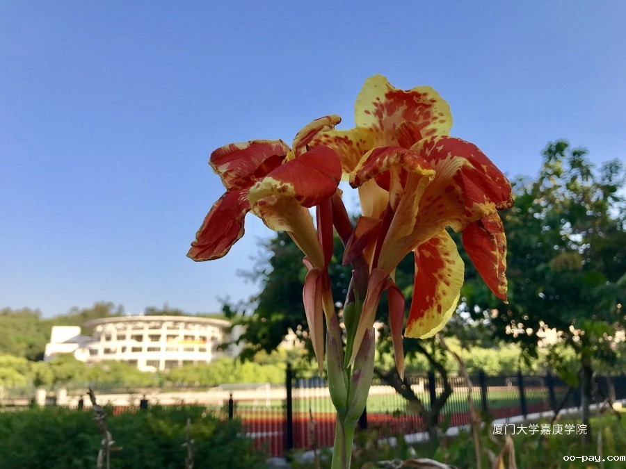 金秋时节,百花凋零,路过田径场,一枝独自绽放的美人蕉花序显得格外显眼!