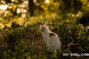 沐浴在夕阳下的猫